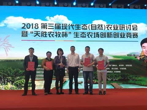 · 2018年4月27-28日,第三届现代生态(自然)农业研讨会暨“天胜农牧杯”生态农场创新创业竞赛,在宁波富邦大酒店举行。来自全国一线的生态农企代表、农艺专家、媒体及嘉宾近200人参会。“天胜农牧杯”生态农场创新创业竞赛决赛现场,12家行业领军企业现场入围,多利农庄荣获“优秀奖”。