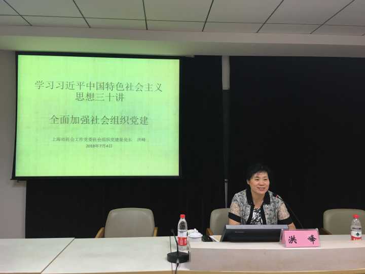 . 社会工作党委社会组织党建处处长洪峰就“学习习近平中国特色社会主义思想三十讲,加强社会组织党建工作”专题内容给大家进行了授课;