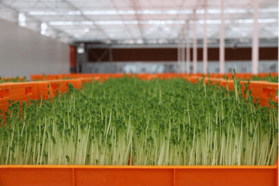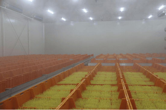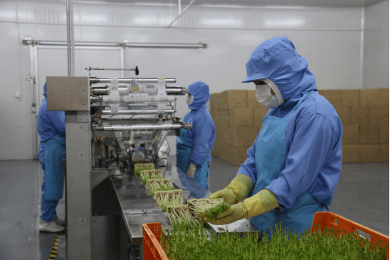 . 芽菜生产:宁可食无肉,不可餐无蔬,随着人民生活水平的提高和生活习惯的改变,绿色蔬菜也受到人们的喜爱,人们对蔬菜的品质,营养价值尤为关注。都市农商社有限公司投入两千多万,建造了新型智能温室,并从荷兰引入了最先进的物流生产设施,包括播种线、催芽线、清洗消毒线、包装线,目前温室建造和设备安装已完毕,新型蔬菜品种芽苗菜“丫丫”已投入生产。