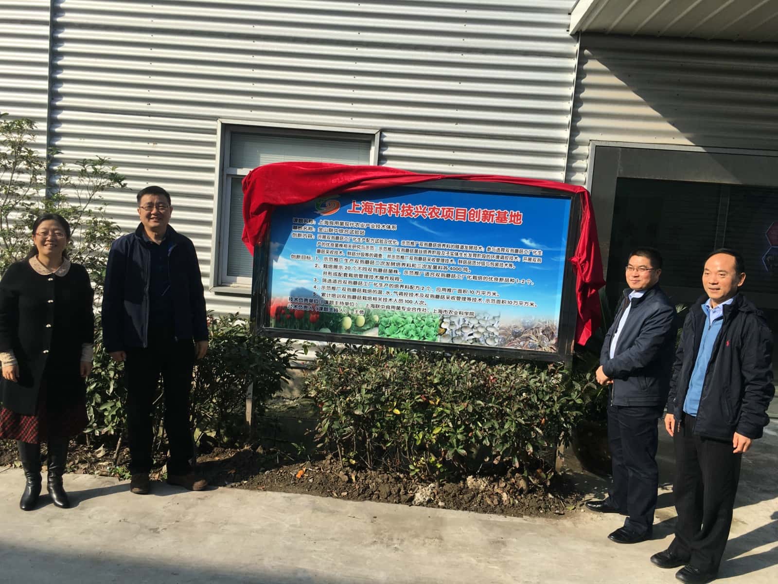 . 陆峥嵘主任,钟绍萍处长,刘佩红主任以及黄建春首席先为联中食用菌专业合作社“上海科技兴农项目创新基地”揭牌。文章源自:上海蔬菜食用菌行业协会 Shanghai Vegetable & Edible Fungi Industry Associatio上海蔬菜食用菌行业协会-https://www.shsjx.org.cn/7844.html