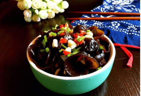 4.将凉透的黑木耳切片或撕碎,放入器皿中