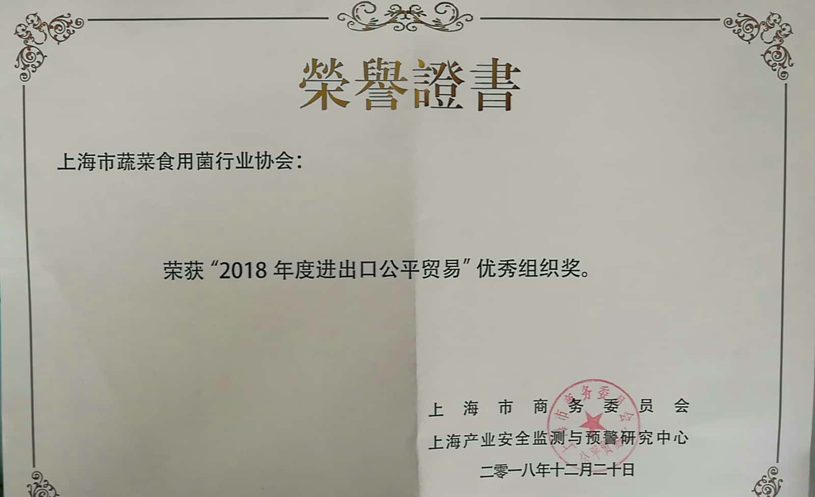 . 会议主要有三项议程:1、行业企业年度预警工作交流,2、贸易政策解读和实务知识讲座,3、行业企业表彰。多家企业和协会荣获表彰,我协会荣获“2018年度进出口公平贸易”优秀组织奖。文章源自:上海蔬菜食用菌行业协会 Shanghai Vegetable & Edible Fungi Industry Associatio上海蔬菜食用菌行业协会-https://www.shsjx.org.cn/8130.html
