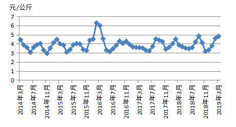 2014.03-2019.03上海蔬菜批发价格走势图文章源自:上海蔬菜食用菌行业协会 Shanghai Vegetable & Edible Fungi Industry Associatio上海蔬菜食用菌行业协会-https://www.shsjx.org.cn/9282.html