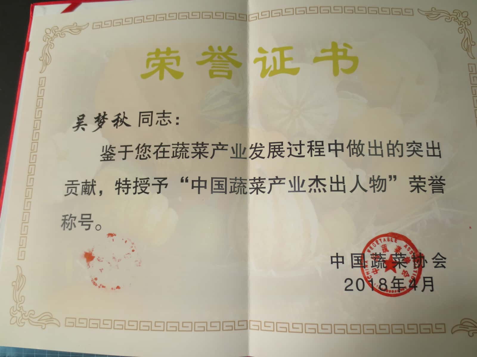 . 为全面贯彻党的十九大和十九届二中、三中全会精神,大力弘扬劳模精神、劳动精神和工匠精神,发挥先进集体和职工的示范引领作用,团结动员广大职工以习近平新时代中国特色社会主义思想为指导,爱岗敬业、争创一流,在上海加快落实三项新的重大任务建设“五个中心”、打响“四大品牌”中发挥主力军作用,上海市总工会评选公布了 2019年上海市五一劳动奖状、奖章、工人先锋号的获奖名单,上海蔬菜(集团)有限公司党委书记、董事长、总裁吴梦秋喜获2019年上海市五一劳动奖章。文章源自:上海蔬菜食用菌行业协会 Shanghai Vegetable & Edible Fungi Industry Associatio上海蔬菜食用菌行业协会-https://www.shsjx.org.cn/9691.html . ↑吴会长云南扶贫签约 . ↑吴梦秋赴贵州扶贫基地调研 . ↑吴会长在宁夏考察蔬果基地 . ↑吴会长在签约仪式上为宁夏供沪蔬菜生产基地授牌 . ↑吴会长接待宁夏考察团 . ↑第七届兰陵蔬菜产业博览会上吴会长致辞 . ↑吴会长带队参加第七届兰陵蔬菜产业博览会 . ↑吴会长在盐城农产品推介会 . ↑吴会长在盐城农产品推介会 . ↑2018年吴会长获评“中国蔬菜产业杰出人物”
