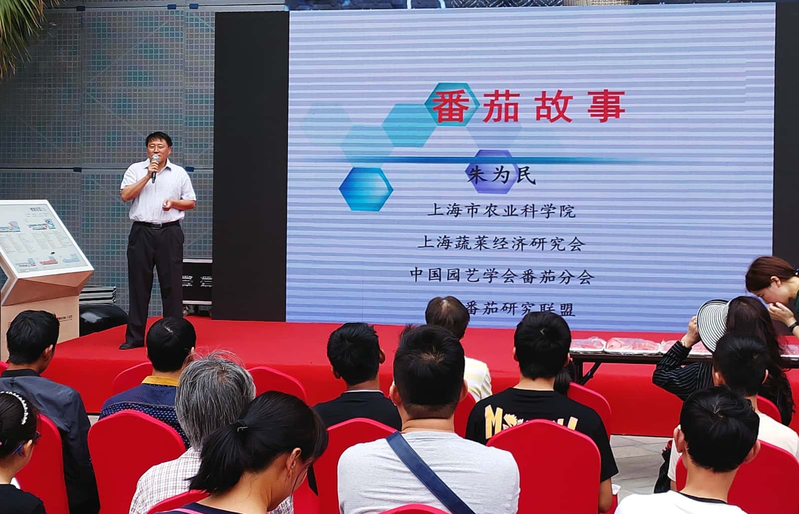. 本次活动由:文章源自:上海蔬菜食用菌行业协会 Shanghai Vegetable & Edible Fungi Industry Associatio上海蔬菜食用菌行业协会-https://www.shsjx.org.cn/9887.html . 主办单位文章源自:上海蔬菜食用菌行业协会 Shanghai Vegetable & Edible Fungi Industry Associatio上海蔬菜食用菌行业协会-https://www.shsjx.org.cn/9887.html . 上海蔬菜经济研究会文章源自:上海蔬菜食用菌行业协会 Shanghai Vegetable & Edible Fungi Industry Associatio上海蔬菜食用菌行业协会-https://www.shsjx.org.cn/9887.html . 上海蔬菜食用菌行业协会文章源自:上海蔬菜食用菌行业协会 Shanghai Vegetable & Edible Fungi Industry Associatio上海蔬菜食用菌行业协会-https://www.shsjx.org.cn/9887.html . 协办单位. 上海农业科技服务中心文章源自:上海蔬菜食用菌行业协会 Shanghai Vegetable & Edible Fungi Industry Associatio上海蔬菜食用菌行业协会-https://www.shsjx.org.cn/9887.html . 上海临港·枫泾科创小镇文章源自:上海蔬菜食用菌行业协会 Shanghai Vegetable & Edible Fungi Industry Associatio上海蔬菜食用菌行业协会-https://www.shsjx.org.cn/9887.html . 各蔬菜专业合作社文章源自:上海蔬菜食用菌行业协会 Shanghai Vegetable & Edible Fungi Industry Associatio上海蔬菜食用菌行业协会-https://www.shsjx.org.cn/9887.html . 支持单位 . 上海盒马网络科技有限公司 品鉴会领导↓ . 上海市农业农村委蔬菜办主任史明、上海蔬菜研究会会长朱为民、盒马鲜生生鲜采购总监陈华、市农科院园艺所副所长沈海斌、上海蔬菜食用菌行业协会秘书长孙占刚、市民代表、参赛各合作社、相关单位等约100人参加了此次会议。 . 此次活动首先由上海市农业科学院番茄团队带头人、园艺所所长朱为民对番茄相关知识进行科普讲座,介绍了番茄的起源、发展及营养品质及产业发展现状,以增加市民对优质番茄的了解。 ↑朱为民 . 市农科院张辉博士进行了番茄新品种路演。重点推出新选育的申粉19大番茄与沪樱9号樱桃番茄,这两个品种针对本市秋茬番茄没有优质抗TY病毒病品种的现状,可以满足生产上的迫切需求。 ↑张辉 . 接下来进入正式的品鉴环节,此次番茄品鉴活动分大番茄和樱桃番茄两组,来自全市22家企业合作社自愿报名,推荐20个大番茄、20个樱桃番茄参与品鉴。市民们分别评选大番茄和樱桃番茄的最佳风味奖和最佳甜度奖。 活动现场↓ . 合作社分别介绍各自产业布局↓ ↑初心合作社代表 ↑孙桥溢佳代表 ↑银龙合作社代表 . 农科院专家带领专业技术人员首先对番茄进行糖度检测,可溶性固形物含量高于4.5%的大番茄、高于8%的樱桃番茄直接进入品鉴环节,未达标的产品由5名市民代投票表决是否进入品鉴环节。品鉴环节,每位市民直接根据口感风味和甜度各选出自己最喜欢的3个番茄品种进行投票。 . 最终获奖结果: . 此次品鉴会不仅满足市民对优质农产品的需求,也为地产优质番茄生产基地打开市场,加速地产优质蔬菜进商超、上餐桌,加速新型经营主体发展提供了渠道。